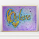 "Tro" på inspirationsgivande ord är en gyllene gult med matchande gult- och orange-hjärtan nedanför ord. En blek blå bakgrund visar brev. Kanten på målningen är i lavender och magenta färg tvättar. Ett ljus lagrar i glitter lägger till kontrast och tecken till målningen. "Tro"-teckningen återges i vattenfärg på papper. Anpassa den här inspirerande ord-konsmålningen poster med din egen text eller bilder. Den inspirerande ord-målningsserien är hämtad från den text som används i ängeln eller andra konstmålningar. "I mitt liv väljer jag att tro på hoppet" -Känn att bilder är designat för att ge eftertanke och meditation på ett enda ord. Tanken är för tänkan om målningen, och det kommer att hjälpa er att ha en positiv inställning till ord som kommer att läka känslomässigt för en människa. Du kan också kombinera dem för att skapa en egen ord-serie för meditation/ övervägande. Vinsterna från denna försäljning stöder den icke-vinstdrivande verksamheten 501(c)3 DonnaBellas Änglar.