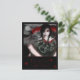 Stil Anime. Flickdocka i ett andetag av röda blommor och bloddroppar.