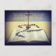 Idémeddelande: Proverbs 3:5-6 övertäckning med bibel, kor och rosary.