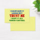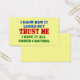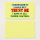 Det står: "Jag vet hur det ser ut, men tro mig, jag har allt under kontroll" i flerfärgade bokstäver och ett något fantigt typsnitt som antyder att det kan vara allt utom "allt under kontroll".