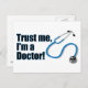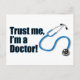Humoriserat vitt vykort med blå stetoskopdesign bredvid ord "Lita på mig att jag är Doktor". Det skulle också vara perfekt för någon som nyligen har utexaminerats från läkarskolan. Det här är anpassadet om du vill ange namn eller slogan för någon, klicka bara på knappen "anpassa" på varje produkt.