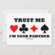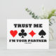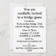 Inbjudan andra till en sakkunnig överbryggar leken med denna inbjudan som presenterar de fyra kortkostymerna tillsammans med ordstävet ", litar på mig I-förmiddagen din partner". Gör alla att komma till ditt överbryggar leken med en dos av överbryggar ordstävstil!