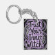 Den här inspirerande nyckelkedjan har en unik oljemålning med en påminnelse om att lita på din inre häxa.