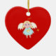 En gullig helgdagängel på en ljus röd bakgrund är lite säker att göra dina dagar festliga.