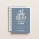Cute "lite Bunny" födelsedagsfest inbjudan i dammig blå. Vit typografi med bunnyört accent och handdragen korgetweave stil mönster.
