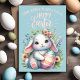 Det här söta Påsk-kortet har en ytlig överbelastning med en liten vit kanin som håller ett målat Påskägg och som sitter i en bukett av blommigt i pastellform som är grönt. Den baby-blå bakgrunden är perfektens komplimang för den rosa av vintage-typ som förklarar "Lite Bunny Önskemål You A Glad påsk". Anpassa genom att anpassa meddelandet inuti och/eller lägga till namn - eller lämna att fält-mjuka för att lägga till handskrivna namnteckning senare.