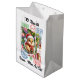 En söt, tecknad-liknande chick, som bär en julhatt och röd sjal, står bredvid ett Julgran. Chicken håller en grönt med ett rött band och en röd båge. En kopp av kaffe och en stapel av inslagna gåvor finns i förgrunden.