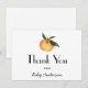 Tack för att du firar mamman att vara! Tack för att du har vykort med vattenfärgsillustrationer av en klementinsk orange som matchar vår inbjudan till babydusch. Anpassa med din information eller klicka på "Klicka för att anpassa ytterligare" för att redigera teckensnittet stilar, storlekt och färg.