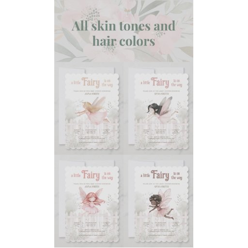 Fira att en flicka kommer med den här söta babyduschinbjudan! Den har en rödhårig älv som flyger över ett trästängsel i en magisk trädgård. Den här fina designen anger tonen på perfekten för en sagematerad babydusch. All text är anpassade och inbjudan finns i olika versioner med älvor av olika hårtoner och hudtoner för att återspegla mamma och pappa egenskaper. Sök efter matchande artiklar i vår butik.