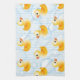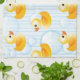 gulliga lite gula ankor på blått görad randig bakgrund med bubblar