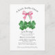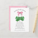 En liten Lucky Charm Shamrock Coquette Bow-inbjudan - fira glädjen över en ny ankomst med denna oemotståndligt charmerande inbjudan till babydusch! Med en mjuk rosa coquette-buk, delikatmässigt försedd med två farliga schampar, är det en söt symbol för tur och kärlek. Framtidsdesignen lyfter fram en lekfull blandning av modern och skripttypografi, som säger "En liten Shamrock är på väg!" - ett uppmuntrande budskap för att upphetsningen. Som en perfekt som avslutar beröring visar baksidan en samordnande rosa gingham mönster, som lägger till ett streck av klassiskt stollig. Denna inbjudan är lika förtjusande som elegant, skapar den perfekten för ett firande fyllt med kärlek, skratt och tur!