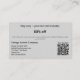 Ett litet steg att ta upp nästa gång - Winter Rcount Card," i ett bekvämt landskapsformat på 3,5 x 2 tum, visar kundens uppskattning och uppmuntrar till upprepad affärsverksamhet genom att erbjuda en rabatt med ett specifikt förfallodatum. På framsidan finns en vintersolnedgång med istäckta vingar och ett tack för att du valt [ditt företag] för ett polerat utseende och professionell. På baksidan hittar du företagets uppskattning av kundsupport, en procentuell rabatt med villkor nedan inklusive ett angivet förfallodatum. Grund-halvan har en anpassningsbar QR-kod med kontaktinformation. Kortet är ett utmärkt marknadsföring verktyg för att visa din tacksamhet och bygga kundlojalitet mot ditt varumärke. Mer inspiration om säsong branding och offlinehandel i marknadsföring finns på www.KBMD3signs.com. Kontakta oss på info@KBMD3signs.com om du behöver hjälp med att anpassa dig.