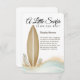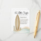 Denna minimalistiska guld-temade inbjudan till babyduschning innehåller en slimmad guld-surfboard, delikat vattenfärg vågar och en ren vit bakgrund för en elegant kustkänsla. Det moderna guld-präglade skriptet och det förfinade sans-serif-teckensnittet skapar en sofistikerad men ändå enkel utformning, perfekt för att fira en liten surfer på vägen. Om du behöver någon annan matchande produkt eller anpassning kan du skicka ett vänligt meddelande via Zazzle.