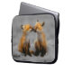 Två förtjusande bebisrävar som delar en söt kyss. Mjuk orange färgläggning på en svartvit bakgrund.