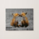 Två förtjusande bebisrävar som delar en söt kyss. Mjuk orange färgläggning på en svartvit bakgrund.