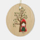 Lite röd ridninghuva som framme står av ett träd, på bakgrund för korn för hand plockadebrunt en wood. Från mitt egna vektorkonstverk