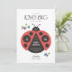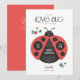 En söt och snyggt babyduschinbjudan med en lekfull och modern illustration av en ladybug med några enkla blomaccenter. Rubriken säger "lite kärlek kryp är på väg" med den redigerbara texten på designen. Det här är en perfekt för alla som förväntar sig ett sött flicka!