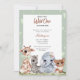 Denna vackra inbjudan till babydusch innehåller en bra samling söt vattenfärgsfärgad baby djur. Titeln säger: "Vår lilla vild är på väg!" Anpassa med egna unika detaljer.
