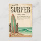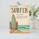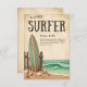 Den här vintage-inspirerade inbjudan till babydusch innehåller en rustik surfa med en vättad beige bakgrund, en klassisk grönt-strimlad yfboard-lutning mot ett trästängsel och spridda segeler på sandstranden. Scenen är färdig med turkos över vinkara hav med en liten surfbräda som rider på brunnen och frammanar en nostalgisk vid sidan av charm. Om du behöver någon annan matchande produkt eller anpassning kan du skicka ett vänligt meddelande via Zazzle.