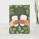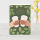 Den här fadersdags-kortet är för kaffebönor! Med min pappa kunde jag alltid berätta om min dag eller be om råd medan jag drack en kopp kaffe med honom. Vi brukade lägga våra huvuden tillsammans och det fanns inget problem som inte kunde lösas. Illustrationen visar en botanisk, lövad kant och två händer som håller kaffemuggar. Texten lyder: "Pappa, Inget slår ett samtal hjärta till hjärta och en god kopp kaffe med dig. Nästa kaffe är på mig."