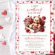 Liten sötnos baby shower inbjudan med söt baby björn i en hjärtformad låda och röd hjärta bakgrund. Lägg bara till dina evenemangsuppgifter till denna bedårande sötnos baby shower inbjudan.