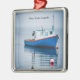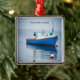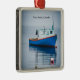 Liten blå fiskebåt julgransprydnad metall