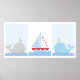 Liten blå val och segelbåt konsttryck poster