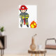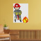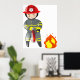 Dekorera ett sovrum eller lekstuga med denna brandmanposter. Denna livfulla väggkonst visar en modig brandmanillustration som inspirerar till en anda av hjältemod och säkerhet. Det är ett utmärkt pedagogiskt verktyg för att lära barn om brandförebyggande eller helt enkelt en rolig dekoration för en framtida räddare. De ljusa färgerna och den tydliga grafiken gör den till en iögonfallande pjäs på valfri vägg.