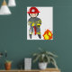 Liten brandman hjälte som släcker eld poster