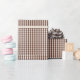 Ett slående in pappert designat med ett brunt- och vitginghammönster i litet format.