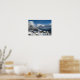 Poster utskrift av den lilla byn Sankt Magdalena i Villnoess-dalen med bergstopparna Geisler Dolomites i bakgrunden i snö under vintersäsongen i Sydtyrolen, Italien.