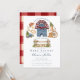 Fira din lilla cowboy med denna charmiga västliga babyfest-inbjudan! Denna söta design har akvarell-cowboy- overall, röd rutig skjorta, stövlar, rep, sheriffmärke, vagnshjul, vintage-farmbilar och detaljer i rustik staket. Den varma country-estetiken i kombination med klassisk röd rutmönster gör den perfekt för västliga, ranch-, cowboy- eller bondgårds-inspirerade babyfester. Anpassa enkelt med dina evenemangsuppgifter för att skapa en söt och minnesvärd inbjudan för att välkomna din lilla cowboy.