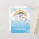 Glad ängelflicka på sin enhörning som springer i molnen. Denna produkt är helt anpassningsbar. Denna design finns på olika andra produkter. © Macy Wong - www.macywong.nl.