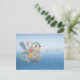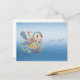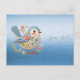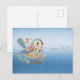 Vacker Liten Fågel Blå Blommig Brodyr Postkort