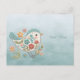 Liten Fågel Blå Rosa Blommor Postkort Vykort