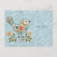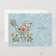 Vacker Liten Fågel Blommig Gröna Blad Brodyr Vykort