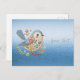 Vacker Liten Fågel Blomsterbroderi Blå Postkort