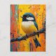 En söt liten fågel som sitter på en gren med en färgglad målad bakgrund AI-genererad konst