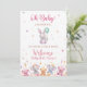 Fira glädjen över att en liten en är på väg med denna ”Oh Baby” flicka bebisfest-inbjudan. Baksidans design har mjuka pastellfärger - tänk rosa, krämiga vita och inslag av guld eller rosafärgade accenter - som skapar en söt och elegant look. Sköna mönster som moln, hjärtan eller små stjärnor ger en lekfull charm som perfekt kompletterar framsidans design.
