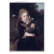 En lite grå tabby katt är här med en flicka med långt blondish hår. Det finns en fjäril i bilden som katten önskar att se.