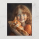 LITEN Flicka & RÖD KATT POSTKORT Vykort