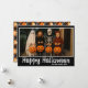 De fyra studerade barnen står stolta framför ett tegelhus. Var och en symboliserar en klassisk Halloween-arketyp: spöke, häxa, skelett och djävulen. Deras pumpantydningar på godis vaktar framåt, medan det varma plaid gräns i orange, svart och vitt kullkastar scenen i mysigt autumnal charm. Den lekfulla typografin och den festliga layouten framkallar nostalgi och stollig - perfekt för att fånga den magiska pografin av pookussäsongen. Den här utformningen är helt anpassade.