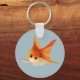 Nyckelring med liten guldfisk. En ensam guldfisk på blå bakgrund.