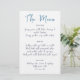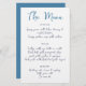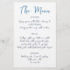 Den här avslappnaden och den visuella bröllop-menyn med ett teckensnitt som imiterar handstil är perfekt för en sommar-bröllop, avslappnad bröllop eller något annat firande där du vill använda menykort för anpassningsbar. Den här menymallen har en blå bakgrund - men det går att anpassa alla färg på menykortet bröllop i designen verktyg! Där kan du också ändra textens placering.