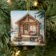 Liten hemlogsskåp i julen på vintern Skogen Julgransprydnad Keramik
