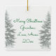 Personlig julprydnad. Cute lilla lilla festive-stugan med snöskogens bakgrund.