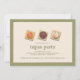 Tre scrumptious aptitretarear smyckar lite denna inbjudan som välkomnar dina gäster till den senaste trenden, i att underhålla - ett tapasparty! Serveraa enkla lilla bitor och aptitretarear tillsammans med vin, sangria eller coctailar.