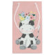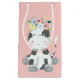 Bedårande kalv med söt blomkrona - den perfekta designen för din ko-tema firande! Ljus och mjuk pastellfärg med rosa prickar i bakgrunden. Ett idealiskt sätt att fira med shabby-chic lantgårdsstil!