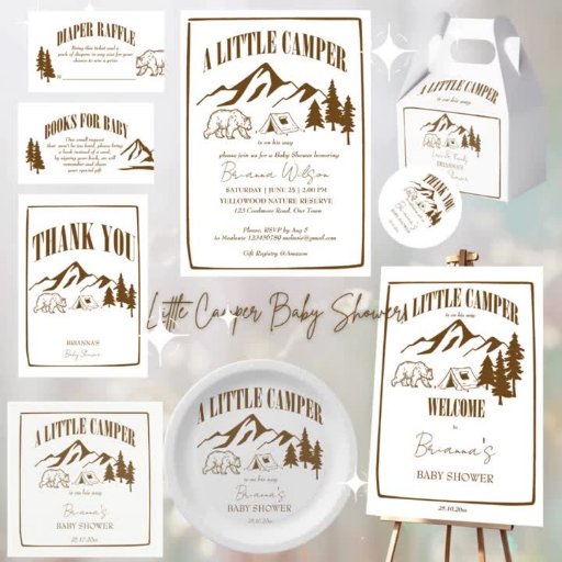 Skämmande mall för liten videokamera i äventyr, redigerbar mall för omedelbar digital nedladdning, söta bergbjörn och tält-skerny-inbjudningskort för babydusch Camping babydusch inbjudningar till könsneutrala babyduschinbjudningar för skräppost..
