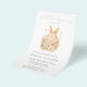 Denna baby shower-design innehåller en leende liten kanin insvept i en mjuk stickad textur, omgiven av ömtåliga blommor. Vattenfärgsillustrationen använder pastelljusblommor och subtilt grönska, vilket ger designen ett mjukt utseende som passar för vår- och påskbaby shower.